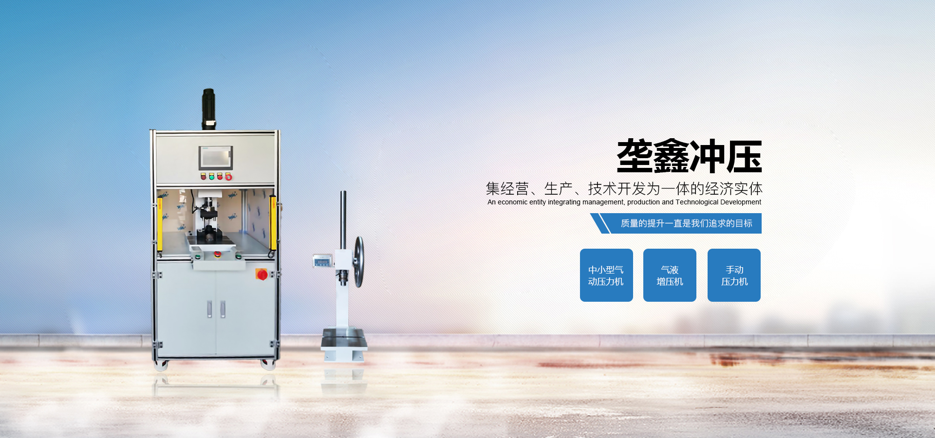 煙臺(tái)壟鑫沖壓設(shè)備有限公司是集經(jīng)營(yíng)、生產(chǎn)、技術(shù)開(kāi)發(fā)為一體的經(jīng)濟(jì)實(shí)體,專(zhuān)業(yè)致力于中小型壓力機(jī)、非標(biāo)壓力機(jī)的設(shè)計(jì)開(kāi)發(fā)和制造。在引進(jìn)德國(guó)、日本等國(guó)家先進(jìn)的鉚壓控制技術(shù)及機(jī)器設(shè)計(jì)理念的基礎(chǔ)上,結(jié)合相關(guān)行業(yè)的實(shí)際需要,開(kāi)發(fā)出各種臺(tái)式、落地式氣動(dòng)壓力機(jī)、手動(dòng)壓力機(jī)、氣液增壓機(jī)、氣液增力缸、旋鉚機(jī)、無(wú)鉚釘鉚接機(jī)等鉚接設(shè)備。產(chǎn)品應(yīng)用領(lǐng)域廣泛,適用于汽車(chē)零件、電子、電器、家電、包裝、五金、等行業(yè)。公司視質(zhì)量為生命,并一貫遵循對(duì)每一臺(tái)產(chǎn)品負(fù)責(zé),對(duì)每一位用戶負(fù)責(zé),真誠(chéng)為您服務(wù)。